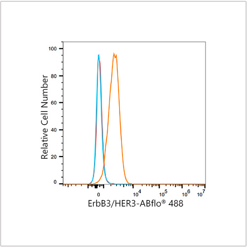 ![]() | Flow cytometry:1×10^6 MCF7 cells were surface-stained with ABflo® 488 Rabbit IgM isotype control (5 μl/Test,left) or ABflo® 488 Rabbit anti-Human ErbB3/HER3 mAb(A24357,5 μl/Test,right). |