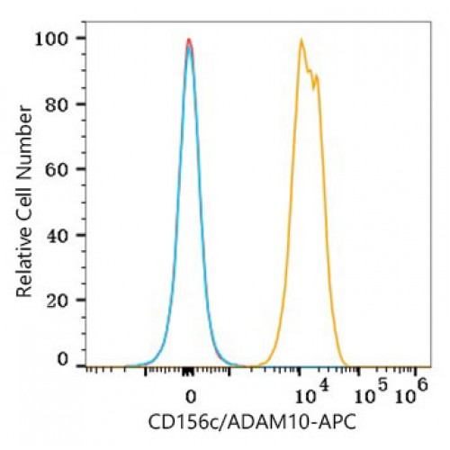 ![]() | Flow cytometry: 1×10^6 Human PBMC were surface-stained with APC Rabbit IgG isotype control (A24173,5 μl/Test,left) or APC Rabbit anti-Human CD156c/ADAM10 mAb (A27129,5 μl/Test,right). |