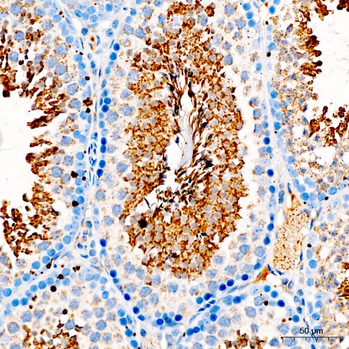 ![]() | Immunohistochemistry analysis of paraffin-embedded Mouse testis tissue using [KD Validated] GPX4 Rabbit mAb (A25009) at a dilution of 1:2000 (40x lens). High pressure antigen retrieval performed with 0.01M Citrate Buffer (pH 6.0) prior to IHC staining. |