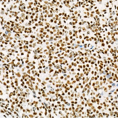 Immunohistochemistry analysis of paraffin-embedded Human spleen using USF1 Rabbit mAb (A23474) at dilution of 1:900 (40x lens). High pressure antigen retrieval performed with 0.01M Citrate Bufferr (pH 6.0) prior to IHC staining.