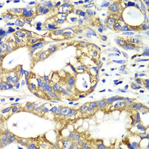 ![]() | Immunohistochemistry analysis of paraffin-embedded Human gastric cancer using [KO Validated] AK2 Rabbit pAb (A6519) at dilution of 1:100 (40x lens). Microwave antigen retrieval performed with 0.01M PBS Buffer (pH 7.2) prior to IHC staining. |