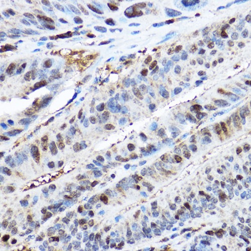 ![]() | Immunohistochemistry analysis of paraffin-embedded Human colon carcinoma tissue using [KO Validated] CDK2 Rabbit pAb (A18000) at a dilution of 1:200 (40x lens). High pressure antigen retrieval performed with 0.01M Citrate Bufferr (pH 6.0) prior to IHC staining. |