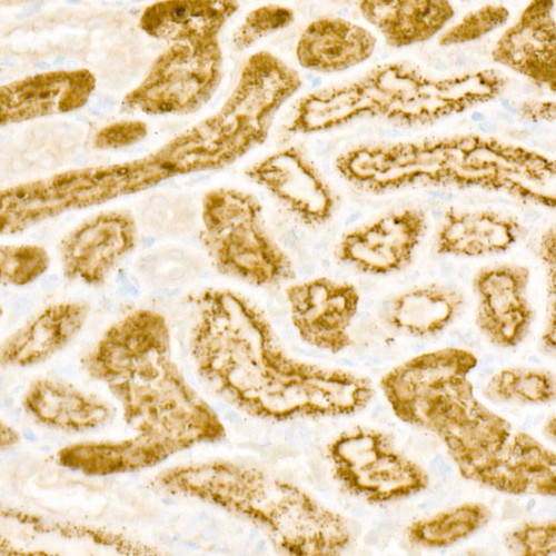 RHOT1 monoclonal antibodyImmunohistochemistry analysis of paraffin-embedded Rat kidney using [KO Validated] RHOT1/MIRO1 Rabbit mAb (A22469) at dilution of 1:300 (40x lens). High pressure antigen retrieval performed with 0.01M Citrate Bufferr (pH 6.0) prior to IHC staining.