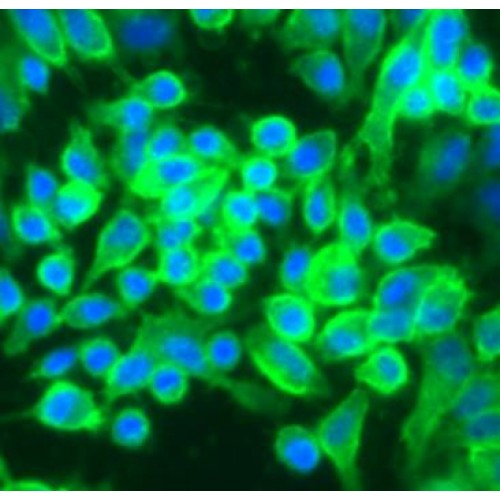 DiO is a green fluorescent, lipophilic carbocyanine and widely used as a lipophilic tracer. It is weakly fluorescent in water but highly fluorescent and quite photostable when incorporated into membranes. It has an extremely high extinction coefficient and short excited-state lifetimes (~1 nanosecond) in lipid environments. Once applied to cells, the dye diffuses laterally within the plasma membrane.