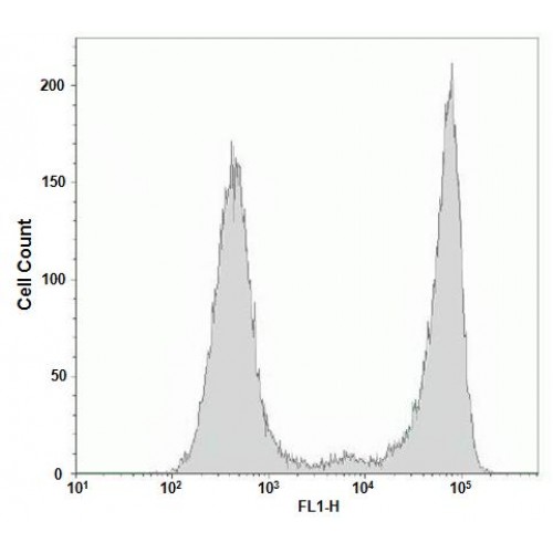Cell proliferation analysis with LiFluor™ 488 EdU Flow Cytometry Assay Kit. Jurkat cells were treated with 10 µM EdU for 2 hours and detected according to the recommended staining protocol. The figures show a clear separation of proliferating cells which have incorporated EdU and nonproliferating cells which have not.