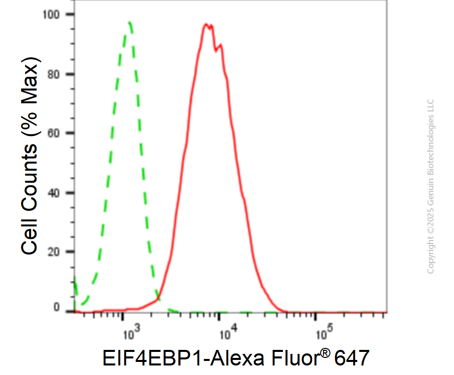 ![]() | Flow cytometric analysis of EIF4EBP1 expression in C2C12 cells using anti-EIF4EBP1 antibody (Cat#63184, 1:2,000). Green, isotype control; red, EIF4EBP1. |