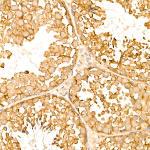 ![]() | Immunohistochemistry analysis of paraffin-embedded Mouse testis using [KD Validated] TOLLIP Rabbit mAb (A23780) at dilution of 1:200 (40x lens). High pressure antigen retrieval performed with 0.01M Citrate Bufferr (pH 6.0) prior to IHC staining. |