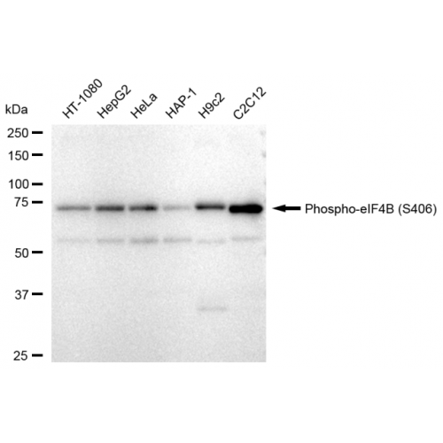 | Immunogen: | A synthetic peptide of human Phospho-eIF4B (S406) |