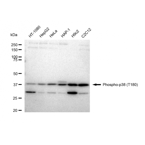 Immunogen: A synthesized peptide derived from human Phospho-p38 (T180)