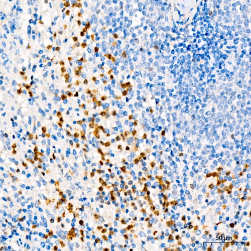 ![]() | Immunohistochemistry analysis of paraffin-embedded Human spleen using [KO Validated] ANXA1 Rabbit pAb (A1118) at dilution of 1:50 (40x lens). High pressure antigen retrieval performed with 0.01M Citrate Bufferr (pH 6.0) prior to IHC staining. |