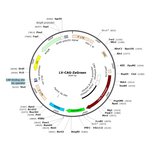| Product Category: | Premade recombinant lentivirus; LV-CAG-ZsGreen; LV-CBA-ZsGreen; CAG-ZsGreen Lentivirus |