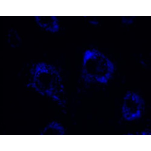Lysosome Blue is a blue lysosomal dye that stains lysosome in living cells. Lysosome Blue can be used to measure the pH of acidic organelles, such as lysosomes. The Lysosome Blue becomes more fluorescent in acidic environments with pKa at ~5.1