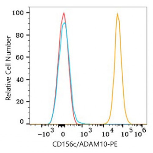 ![]() | Flow cytometry: 1×10^6 Human PBMC were surface-stained with PE Rabbit IgG isotype control (A24172,5 μl/Test,left) or PE Rabbit anti-Human CD156c/ADAM10 mAb (A27128,5 μl/Test ,right). |