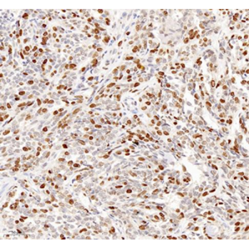 ![]() | IHC analysis of KI67 (GB111499). Sample: Human colon cancer (Paraffin), 4% PFA (G1101) 12-24h. Antigen retrieval: Citrate buffer (pH 6.0) (G1201), pressure cooker 2min. Blocking buffer: 3% BSA in PBS (GC305010), RT, 30min. Primary antibody: 1: 500, 4°C overnight. Secondary antibody: HRP Goat Anti-Rabbit lgG (GB23303), 1: 200 RT 1h. |