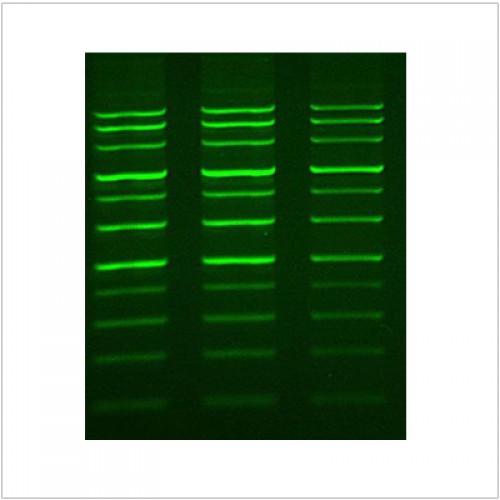 LiGreen™ Plus Nucleic Acid Gel Stain is an exceptionally sensitive fluorescent stain designed for the detection of nucleic acids within agarose and polyacrylamide gels. This versatile stain offers high-sensitivity detection for both double-stranded and single-stranded DNA and RNA. It provides flexibility in application, allowing for post-staining of gels or incorporation into agarose gels during the casting process. LiGreen™ Plus is designed to be compatible with various light sources, including a standard 300 nm transilluminator, a 254 nm transilluminator, a blue-light transilluminator, as well as gel readers equipped with visible light excitation such as a 488 nm laser-based gel scanner, ensuring broad applicability and ease of use in various laboratory settings.